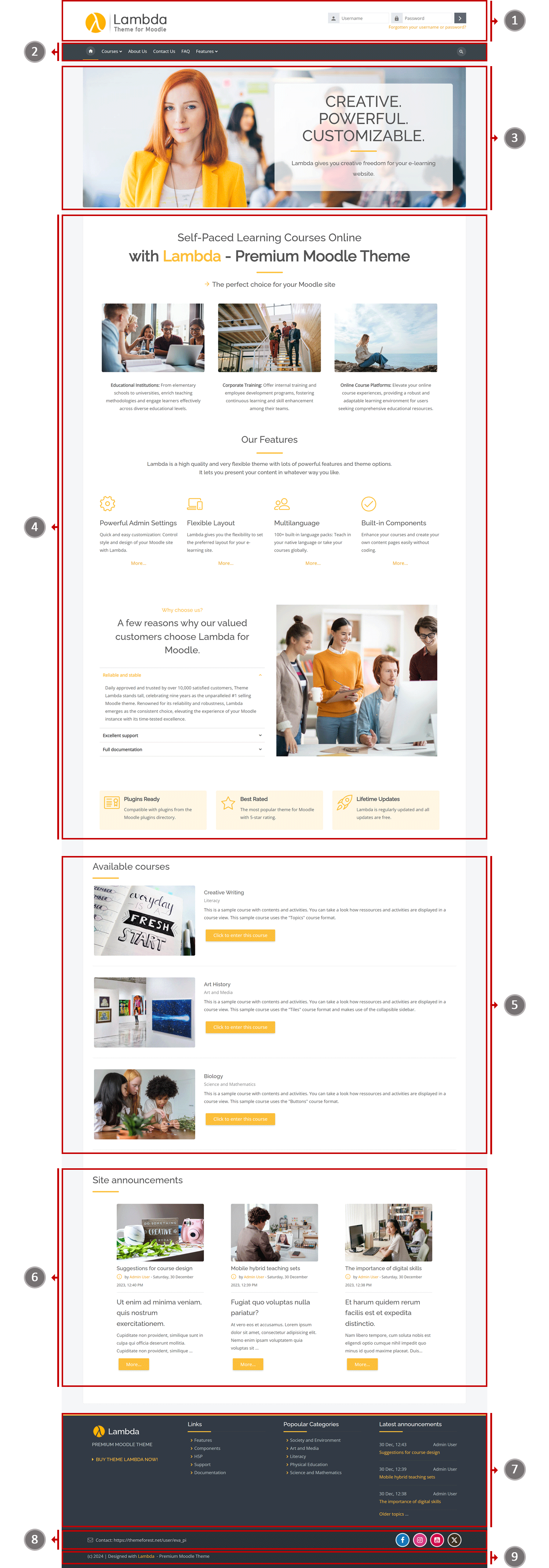| 9 | Footnote row [ Lambda's »Footer« settings page] |